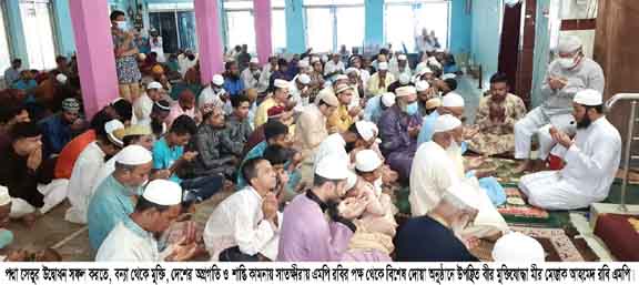 মাহফিজুল ইসলাম আককাজ : আগামী ২৫ জুন জননেত্রী শেখ হাসিনার হাত দিয়ে স্বপ্নের পদ্মা সেতুর উদ্বোধন সফল করতে, বন্যা থেকে মুক্তি এবং দেশের সমৃদ্ধি-শান্তি কামনা ও সামগ্রীক উন্নয়ন অগ্রযাত্রা অব্যাহত রাখতে সাতক্ষীরার সদর নির্বাচনী এলাকার মসজিদে মসজিদে বিশেষ দোয়া ও মিষ্টি বিতরণ করা হয়েছে। আজ ২৪ জুন ২০২২ রোজ শুক্রবার বাদ জুমআ সাতক্ষীরা সদর নির্বাচনী এলাকার ১৪টি ইউনিয়নের প্রতিটি ওয়ার্ডে ও পৌরসভার ৯টি ওয়ার্ডে সাতক্ষীরা জেলা আওয়ামী লীগের সিনিয়র সহ-সভাপতি ও সদর-২ আসনের সংসদ সদস্য নৌ-কমান্ডো ০০০১ বীর মুক্তিযোদ্ধা মীর মোস্তাক আহমেদ রবির আয়োজনে এবং সার্বিক ব্যবস্থাপনায় পদ্মাসেতুর উদ্বোধনের খুশিতে মহান আল্লাহর দরবারে এ বিশেষ দোয়া কামনা ও মিষ্টি বিতরণ করা হয়। বীর মুক্তিযোদ্ধা মীর মোস্তাক আহমেদ রবি এমপি শহরের মুনজিতপুরস্থ কেন্দ্রীয় ঈদগাহ সংলগ্ন জামে মসজিদে পবিত্র জুমআ নামাজ আদায় করে দোয়া অনুষ্ঠানে শরীক হন। দোয়া শেষে মসজিদের মুসুল্লীদের মাঝে মিষ্টি বিতরণ করেন। পরে শহরের নবারুণ বালিকা উচ্চ বিদ্যালয় মোড়, পিএন স্কুল মোড়, পাকা পোল মোড়, নিউ মার্কেট মোড়সহ বিভিন্ন ইউনিয়নের গ্রামে গ্রামে মিষ্টি বিতরণ করেন। দিনটি বাংলাদেশের ইতিহাসে চিরস্মরণীয় হয়ে থাকবে। সেলক্ষ্যে বীর মুক্তিযোদ্ধা এমপি রবির আয়োজনে ও সার্বিক ব্যবস্থাপনায় সাতক্ষীরা সদর নির্বাচনী এলাকার ১৪টি ইউনিয়ন, পৌরসভার ৯টি ওয়ার্ডের ১ হাজার ২৪টি মসজিদে একযোগে বাদ জুমআ দোয়া অনুষ্ঠান অনুষ্ঠিত হয়েছে। এসময় দলীয় নেতা কর্মী ও দলীয় জনপ্রতিনিধিদেরকে স্ব স্ব এলাকার মসজিদে উপস্থিত থেকে বিশেষ দোয়া ও মোনাজাতে অংশগ্রহণ করেন। বীর মুক্তিযোদ্ধা এমপি রবি বলেন, দেশের কল্যাণ কামনায় যিনি থাকেন সবসময় অতন্দ্র প্রহরী। তিনি জাতির জনক বঙ্গবন্ধু কন্যা প্রধানমন্ত্রী জননেত্রী শেখ হাসিনা। একবিংশ শতাব্দীতে বিশ্বের আর কোনো দেশ উন্নতির এমন অসাধ্য সাধন করতে পারেনি, যেমন পেরেছে জননেত্রী শেখ হাসিনার নেতৃত্বে বাংলাদেশ। একটি স্বল্পোন্নত দেশ থেকে, নিম্ন মধ্যম আয়ের পথ পেরিয়ে উন্নত বাংলাদেশে পরিণত হওয়ার দিকে অপ্রতিরোধ্য গতিতে এগিয়ে চলার নাম মানবতার ‘মা’ জননেত্রী শেখ হাসিনা। শেখ হাসিনার সরকার নিজস্ব অর্থায়নে স্বপ্নের পদ্মা সেতুর উদ্বোধনের মাধ্যমে দেখিয়ে দিচ্ছেন বাঙালিরা সবই পারে, বাংলাদেশ পারে।