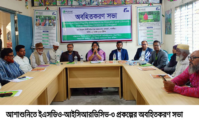 মুসলিম এইড ইউকে বাংলাদেশ ফিল্ড অফিসের সহায়তায় ইকো সোশ্যাল ডেভেলপমেন্ট অর্গানাইজেশন (ইএসডিও) আশাশুনি উপজেলার প্রতাপনগর, শ্রীউলা ও আশাশুনি সদর ইউনিয়নে দুর্যোগ ও জলবায়ু ঝুঁকিপ্রবণ জনগোষ্ঠীর সহনশীলতা বৃদ্ধির লক্ষ্যে প্রকল্পের তৃতীয় পর্যায়ের কার্যক্রম শুরু করেছে।