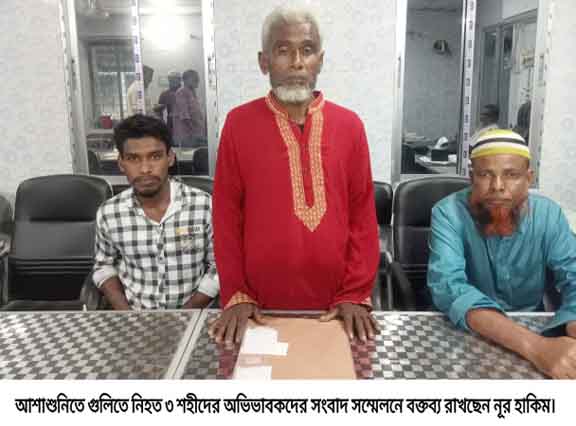 আশাশুনিতে গুলিতে নিহত ৩ শহীদের অভিভাবকদের সংবাদ সম্মেলন