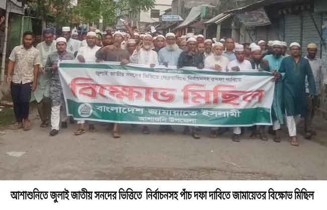 আশাশুনিতে জুলাই জাতীয় সনদের ভিত্তিতে নির্বাচনসহ পাঁচ দফা দাবিতে জামায়েতর বিক্ষোভ মিছিল