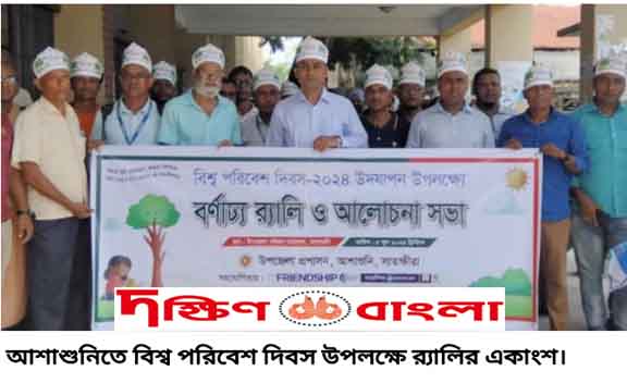 আশাশুনি (সাতক্ষীরা) প্রতিনিধি : আশাশুনিতে বিশ্ব পরিবেশ দিবস-২০২৪ উদযাপন উপলক্ষে র্যালি ও আলোচনা সভা অনুষ্ঠিত হয়েছে। আজ ০৫ জুন ২০২৪ রোজ বুধবার সকাল ১০টায় উপজেলা প্রশাসন এ কর্মসূচির আয়োজন করে। দিবসের শুরুতে উপজেলা পরিষদ চত্বর থেকে একটি র্যালি বের করা হয়। র্যালিট বিভিন্ন সড়ক প্রদক্ষিণ শেষে উপজেলা পরিষদেরর সামনে গিয়ে শেষ হয়। পরে উপজেলা পরিষদ সম্মেলন কক্ষে আলোচনা সভা অনুষ্ঠিত হয়। “করবো ভূমি পুনরুদ্ধার রুখবো মরুময়তা, অর্জন করতে হবে মোদের খরা সহনশীলতা” এ প্রতিপাদ্যকে সামনে রেখে উপজেলা নির্বাহী কর্মকর্তা মোঃ রনি আলম নূরের সভাপতিত্বে আলোচনা সভায় বক্তব্য রাখেন ও উপস্থিত ছিলেন, সাবেক উপজেলা মুক্তিযোদ্ধা কমান্ডার আব্দুল হান্নান, পরিবার পরিকল্পনা কর্মকর্তা মশিউর রহমান, সহকারি প্রোগ্রামার আক্তার ফারুক বিল্লাল, সেনেটারী ইন্সপেক্টর জি এম গোলাম মোস্তফা, সাতক্ষীরা জেলা ধারাভাষ্যকার আশরাফ হোসেন। সভায় সরকারি কর্মকর্তা ও বিভিন্ন এনজিও’র কর্মকর্তাবৃন্দ উপস্থিত ছিলেন। অনুষ্ঠানে ৫০ জন প্রকল্প অংশীদারদের মাঝে ১০০ কদবেল ও আম রূপালী চারা বিতরণ করা হয়।