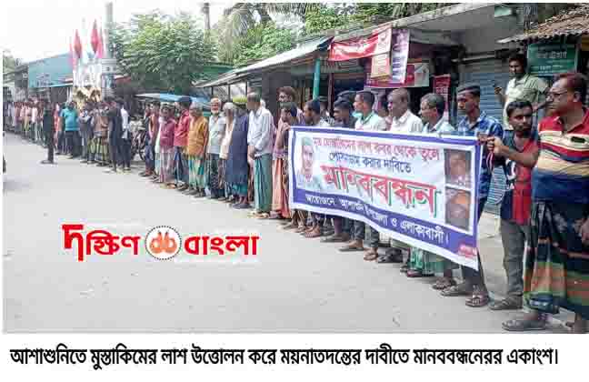 আশাশুনিতে মুস্তাকিমের লাশ উত্তোলন করে ময়নাতদন্তের দাবীতে মানববন্ধন
