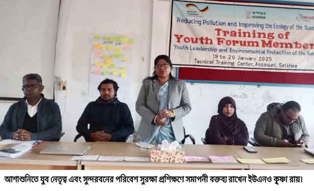 রুপান্তর খুলনার আয়োজনে রবিবার সকালে প্রশিক্ষণের শুভ উদ্বোধন করেন, উপজেলা যুব উন্নয়ন কর্মকর্তা সঞ্জীব কুমার দাশ। ইয়থ ফর দ্যা সুন্দরবন ফোরাম আশাশুনি উপজেলার ৩১ জন সদস্য/সদস্যার অংশ গ্রহনে অনুষ্ঠানে সুন্দরবনের গুরুত্ব, সুন্দরবনকে কেন রক্ষা করতে চাই, প্লাস্টিক-পলিথিন, মাছ ধরার অপ কৌশল, পর্যটনের ধরনের কারনে দুষণ ও প্রভাব, প্লাস্টিক-পলিথিনের ব্যবহার সীমিতকরন, বর্জ্য ব্যবস্থাপনা, বিভিন্ন ক্রান্তিকালে যুব নেতৃত্বের অবদান, নেতৃত্বের গুণাবলী, সমস্যা চিহ্নতকরণ, অ্যাডভোকেসীর কৌশল, সংগঠন, ব্যবস্থাপনা, দল গঠন ও নিবন্ধন সম্পর্কে ধারণা, দুষণ কমাতে যুব কেন্দ্রিক পরিকল্পনা প্রণয়ন, প্রশিক্ষণ উত্তর ধারণা যাচাই, প্রতিফলন ইত্যাদি নিয়ে প্রশিক্ষণ প্রদান করা হয়। প্রশিক্ষণ প্রদানন করেন, ট্রেইনার খালিদ লামি ও আরিজা আঁখি। সুন্দরবন প্রকল্পের জেলা সমন্বয়কারী গোলাম কিবরিয়ার সভাপতিত্বে ও সঞ্চালনায় সোমবার বিকালে সমাপনী অনুষ্ঠানে প্রধান অতিথি হিসাবে সমাপনী আলোচনা রাখেন, উপজেলা নির্বাহী অফিসার কৃষ্ণা রায়।