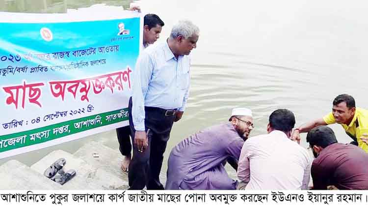 আশাশুনিতে ২৫ জলাশয়ে ৪৮৩ কেজি কার্প জাতীয় মাছ অবমুক্ত