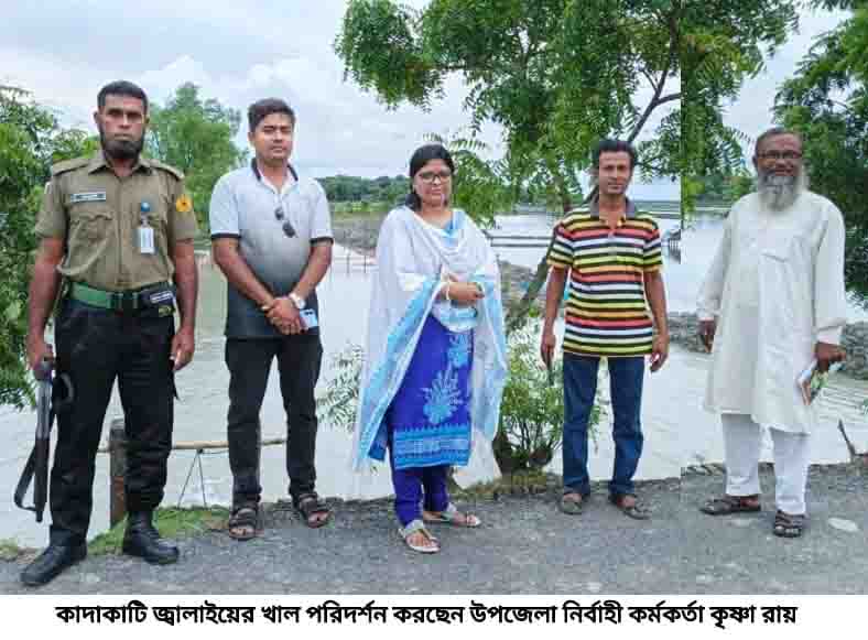 কাদাকাটি ইউনিয়নের তেঁতুলিয়া গ্রামে জালায়ের খালের মুখে স্লুইস গেট অবস্থিত। গেট দিয়ে এলাকার কয়েক শত বিঘা জমির এবং করচাখালী, যদুয়ারডাঙ্গা, টেংরাখালী, তেতুলিয়া, শাহনগর, মোকামখালী বিলের পানি নিস্কাশিত হয়ে থাকে। খালটি ভরাট ছিল। সম্প্রতি খনন কাজ করা হয়েছে। কিন্তু গেটের মুখে নেটের বেড়া ও বাইরের মুখে বেইন জাল দিয়ে মাছ ধরা হচ্ছে। গেটটি মাছ ধরার সাথে জড়িতরা নিজেদের প্রয়োজনে যথেচ্ছ ব্যবহার করছে বলে অভিযোগ রয়েছে। বৃষ্টির সময় খাল-বিল ও মৎস্য ঘের ভরা থাকার পরও প্রয়োজনীয় পানি নিস্কাশন না করে মাছ ধরার উদ্দেশ্যে গেটটি দিয়ে পানি উঠানো হচ্ছে বলে অভিযোগ রয়েছে। বুধবার বিকালে যখন ইউএনও কৃষ্ণা রায় ঘটনাস্থলে পৌছান তখনও জোয়ারের পানি ভিতরে ঢুকতেছিল। এসময় তিনি গ্রাম পুলিশের মাধ্যমে গেট দিয়ে পানি উঠানোর সাথে জড়িতদের তাঁর কার্যালয়ে উপস্থিত করাতে নির্দেশ প্রদান করেন।