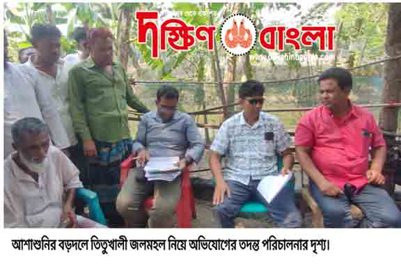 আশাশুনি (সাতক্ষীরা) ব্যুরো : আশাশুনি উপজেলার বড়দল ইউনিয়নের তিতুখালী জনমহলের ইজারা বাতিলের অভিযোগের তদন্ত অনুষ্ঠিত হয়েছে। জলমহল ইজারা গ্রহিতাদের বিরুদ্ধে আনীত অভিযোগ মিথ্যা ও জাল জালিয়াতিতে ভরা বলে ইজারা গ্রহিতা সমিতির সদস্যরা দাবী করেছেন। আজ ১৭ এপ্রিল ২০২৪ রোজ বুধবার দুপুরে তদন্ত কমিটি সিনিঃ উপজেলা মৎস্য কর্মকর্তা সত্যজিৎ মজুমদার, সহকারি সমবায় কর্মকর্তা সন্ন্যাসী মন্ডল ও ইউনিয়ন ভূমি সহকারী কর্মকর্তা আবু বক্কার সিদ্দিক সরেজমিনে উপস্থিত হয়ে তদন্ত কার্যক্রম পরিচালনা করেন।
