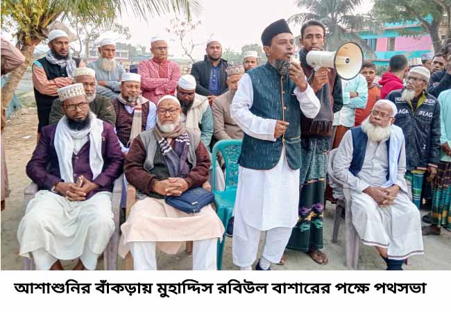 আশাশুনি (সাতক্ষীরা) প্রতিনিধি : আশাশুনি উপজেলা শোভনালী ইউনিয়নে জামায়াতে ইসলামী উদ্যোগে নির্বাচনী পথ সভা অনুষ্ঠিত হয়েছে। আজ ১১ ডিসেম্বর ২০২৫ রোজ বৃহস্পতিবার বাঁকড়া সরকারি প্রাথমিক বিদ্যালয় মাঠে এ সভা অনুষ্ঠিত হয়।