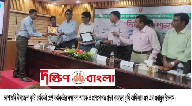 আশাশুনি (সাতক্ষীরা) প্রতিনিধি : আশাশুনি উপজেলা কৃষি অফিসার কৃষিবিদ এস এম এনামুল ইসলামকে শ্রেষ্ঠ উপজেলা কৃষি অফিসার হিসাবে সম্মাননা স্মারক পেয়েছেন। ২২ মে ২০২৪ রোজ বুধবার অতিরিক্ত পরিচালকের কার্যালয় খুলনা অঞ্চল, খুলনায় তাকে সংবর্ধনা ও সম্মাননা স্মারক প্রদান করা হয়।