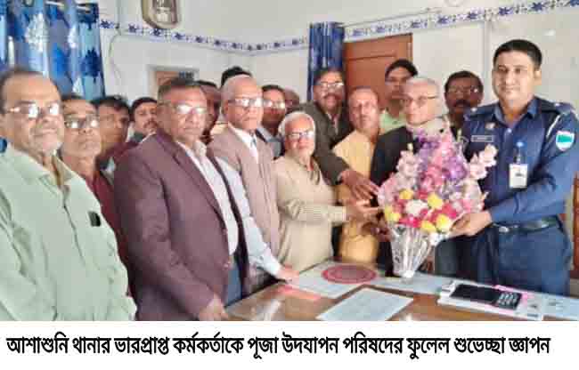 আশাশুনি (সাতক্ষীরা) প্রতিনিধি : আশাশুনি থানার অফিসার ইনচার্জ নোমান হোসেনকে পূজা উদযাপন পরিষদ নেতৃবৃন্দ ফুলেল শুভেচ্ছা ও মতবিনিময় করেছেন। আজ ০৮ ফেব্রুয়ারি ২০২৫ রোজ শনিবার বেলা ১১ টায় অফিসার ইনচার্জ এর কার্যালয় এ ফুলেল শুভেচ্ছা ও মতবিনিময় করা হয়।