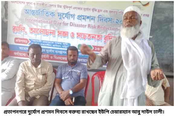 খুলনা ও সাতক্ষীরা জেলার উচ্চ ঝুঁকিপূর্ণ এলাকায় দুর্যোগ ঝুঁকি হ্রাস এবং জলবায়ু পরিবর্তন অভিযোজন প্রকল্পের আওতায় কারিতাস জার্মানি ও বিএম জেড প্রকল্পের অর্থায়নে ইউনিয়ন দুর্যোগ ব্যবস্থাপনা কমিটি এ অনুষ্ঠানের আয়োজন করে। কারিতাস বাংলাদেশ খুলনা অঞ্চলের বাস্তবায়নে স্থানীয় বেনিফিসারি নারিদের অংশগ্রহণে সভায় সভাপতিত্ব করেন ইউপি চেয়ারম্যান আলহাজ্ব আবু দাউদ ঢালী। মাঠ কর্মকর্তা শেখ কামাল হোসেনের সঞ্চালনায় অনুষ্ঠানে বক্তব্য রাখেন ইউপি সদস্য সোহরাব হোসেন, মোখছেদুর রহমান, কামরুল ইসলাম, সাবেক ইউপি সদস্য আবু আব্দুল্লাহ ও সাংবাদিক মাসুম বিল্লাহ। আলোচনা সভা শেষে ইউনিয়নের প্রধান সড়কে র্যালি প্রদক্ষিণ করা হয়। অনুষ্ঠান শেষে বেনিফিসিয়ারিদেরকে ১ টি করে কদবেলের চারা প্রদান করা হয়।