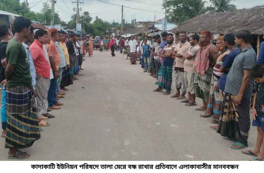 কাদাকাটি ইউনিয়ন পরিষদ তালা বন্ধের প্রতিবাদে এলাকাবাসীর মানববন্ধন