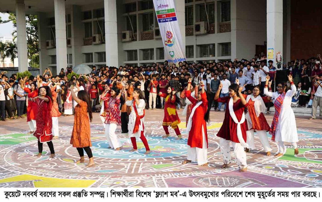 সংবাদ বিজ্ঞপ্তি : উৎসবমুখর পরিবেশে বাংলা নববর্ষ-১৪৩৩ বরণ করে নিতে বর্ণাঢ্য সাজে সেজেছে খুলনা প্রকৌশল ও প্রযুক্তি বিশ্ববিদ্যালয় (কুয়েট) ক্যাম্পাস। ক্যাম্পাসজুড়ে এখন উৎসবের আমেজ, বর্ণিল আলপনা, প্যান্ডেল সাজানো, বৈশাখী শোভাযাত্রার জন্য বিভিন্ন প্রতীকী উপকরণ তৈরি, সাংস্কৃতিক অনুষ্ঠানের মঞ্চ এবং বিভিন্ন স্টল প্রস্তুত। শিক্ষার্থী ও শিক্ষকরা সম্মিলিতভাবে এই আয়োজনকে সফল করতে কাজ করেছেন। ১৪ এপ্রিল মঙ্গলবার দিনব্যাপী কর্মসূচি সফল করতে সোমবার বিশ্ববিদ্যালয়ের ছাত্র কল্যাণ দপ্তরের তত্ত্বাবধানে এবং শিক্ষার্থীদের স্বতস্ফূর্ত অংশগ্রহণে উৎসবের সার্বিক প্রস্তুতি সম্পন্ন করা হয়েছে। বিশ্ববিদ্যালয়ের স্টুডেন্ট ওয়েলফেয়ার সেন্টারের সামনে শিক্ষার্থীরা বিশেষ ‘ফ্ল্যাশ মব’-এ উৎসবমুখোর পরিবেশে শেষ মুহূর্তের সময় পার করছে। এছাড়া বিকেল থেকেই বিশ্ববিদ্যালয়ের বিভিন্ন হলের প্রবেশপথে এবং আঙিনায় শুরু হয়েছে বর্ণিল আলপনা অঙ্কন, যা চলবে রাত ১০টা পর্যন্ত। পুরো ক্যাম্পাস এখন উৎসবের আমেজে মুখরিত। সন্ধ্যায় বিশ্ববিদ্যালয়ের ভাইস-চ্যান্সেলর প্রফেসর ড. মুহাম্মদ মাছুদ আয়োজনের বিষয়ে সার্বিক খোঁজখবর নেন এবং বিভিন্ন স্টল ও আলপনা ঘুরে দেখেন। সেইসাথে সকল অনুষ্ঠান সুষ্ঠুভাবে উৎসব মুখর পরিবেশে সম্পন্নের জন্য সবার সহযোগিতা কামনা করেন। আগামীকাল সকাল ৮:০০টায় বিশ্ববিদ্যালয়ের খেলার মাঠে ঐতিহ্যবাহী ‘বৈশাখী মেলা’ উদ্বোধনের মাধ্যমে মূল অনুষ্ঠান শুরু হবে। মেলার পাশাপাশি থাকবে বাউল সংঙ্গীত, সাপ খেলা, বানর খেলা, ম্যাজিক শো, ট্রেজার হান্ট, মোরগ লড়াই, কাবাডি খেলা, ঘুড়ি উৎসবসহ গ্রামবাংলার চিরচেনা সব আয়োজন। নিরাপত্তার বিষয়টি নিশ্চিত করে উৎসবের সকল প্রস্তুতি ইতিমধ্যে চূড়ান্ত করা হয়েছে।