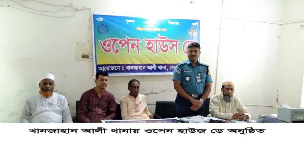 মিহির রঞ্জস বিশ্বাস, ফুলতলা : খানজাহান আলী থানায় ওপেন হাউজ ডে অনুষ্ঠিত। আজ ২৪ জুন ২০২২ রোজ শুক্রবার সকাল ১০ টায় থানা অডিটরিয়মে অনুষ্ঠিত হয়। খানজাহান আলী থানা খানজাহান আলী থানা কমিউনিটি পুলিশিং কমিটির সভাপতি ও আটরা গিলাতলা ইউনিয়ন পরিষদের চেয়ারম্যান শেখ মনিরুল ইসলাম এর সভাপতিত্বে ও খানজাহান আলী থানা কমিউনিটি পুলিশিং অফিসার (সিপিও) এস আই আসাদুজ্জামান এর পরিচালনায় বক্তব্য রাখেন থানা অফিসার্স ইনচার্জ মোঃ কামাল হোসেন খান, খানজাহান আলী থানা মুক্তিযোদ্ধা কমান্ডার স,ম রেজওয়ান আলী, থানা কমিউনিটি পুলিশিং এর সাধারণ সম্পাদক মোড়ল আনিসুর রহমান, ওসি তদন্ত মোঃ শাহারিয়ার হোসেন, এ সময় উপস্থিত ছিলেন মোঃ ইউসুফ আলী খলিফা, শাহাজান হাওলাদার, মোড়ল হাবিবুর রহমান, ইউপি সদস্য গোলাম জিলানী মুন, ইউপি সদস্য আল আমিন, মোঃ হাফিজুর রহমান, মহিলা ইউপি সদস্য রাজিয়া বেগম, মোড়ল মুজিবর রহমান, হোসেন আলী হাওলাদার, শেখ জয়নাল আবেদীন, লিয়াকত মুন্সি, মুক্তা বেগম, সেকেন্দার আলী, খানজাহান থানা সাংবাদিক ইউনিটির সাংগঠনিক সম্পাদক সাইফুল্লাহ তারেক, সাংবাদিক গাজী মাকুল উদ্দিন, সাংবাদিক মিহির রঞ্জন বিশ্বাস সহ বিভিন্ন ওয়ার্ডের কমিউনিটি পুলিশিং কমিটির সভাপতি সাধারন সম্পাদক ও সুধি সমাজের ব্যক্তিবর্গ এ সময় উপস্থিত ছিলেন। সভায় অনলাইনে থানায় জিডি, পুলিশের ডিজিটাল সেবাসহ জাতীয় বিভিন্ন সেবা সম্পর্কে আলোচনা করা হয়। এসময়ে ওসি মোঃ কামাল হোসেন খান থানা এলাকার আইনশৃংখলা পরিস্থিতি স্বাভাবিক রাখতে প্রশাসনের পাশাপাশি জনপ্রতিনিধি সহ সাধারন মানুষের সহযোগিতা কামনা করেন। সভা শেষে খানজাহান আলী থানার ওসি মোঃ কামাল হোসেন সহ আগত অতিথিবৃন্দরা থানা অভ্যান্তরে বিভিন্ন ফলজ, বনজ ও ঔষধি বৃক্ষ রোপন করেন।