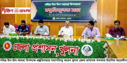 খুলনায় পবিত্র ইদ-উল-আযহা যথাযোগ্য মর্যাদা ও ভাবগাম্ভীর্যের সাথে উদযাপনের লক্ষ্যে স্থানীয় কর্মসূচি প্রণয়নের জন্য এক প্রস্তুতিসভা আজ ০৬ জুন ২০২৪ রোজ বৃহস্পতিবার দুপুরে জেলা প্রশাসক খন্দকার ইয়াসির আরেফীনের সভাপতিত্বে তাঁর সম্মেলনকক্ষে অনুষ্ঠিত হয়।