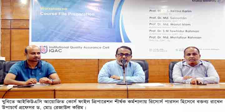 কর্মশালায় রিসোর্স পারসন হিসেবে আলোচনা করেন উপাচার্য প্রফেসর ড. মোঃ রেজাউল করিম। তিনি বলেন, কোর্স ফাইল শিক্ষার গুণগত মান নিশ্চিতকরণের অন্যতম গুরুত্বপূর্ণ উপাদান। এটি শিক্ষার্থীদের জন্য যেমন সহায়ক, তেমনি একাডেমিক স্বচ্ছতা ও জবাবদিহিতার ক্ষেত্রেও গুরুত্বপূর্ণ ভূমিকা রাখে।