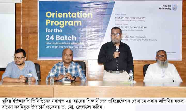আজ ২৪ অক্টোবর ২০২৪ রোজ বৃহস্পতিবার দুপুরে খুলনা বিশ্ববিদ্যালয়ের নগর ও গ্রামীণ পরিকল্পনা (ইউআরপি) ডিসিপ্লিনের নবাগত ২৪ ব্যাচের শিক্ষার্থীদের ওরিয়েন্টেশন অনুষ্ঠানে প্রধান অতিথির বক্তব্যে তিনি এ কথা বলেন।