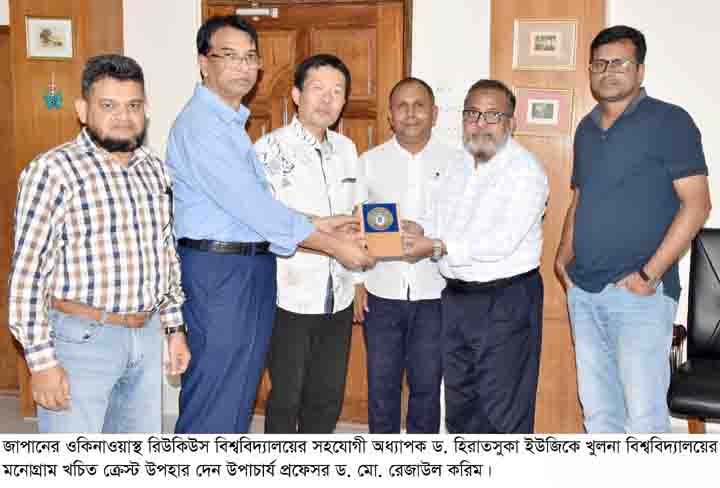 এ সময় উপাচার্য খুলনা বিশ্ববিদ্যালয়ে তাঁকে স্বাগত জানিয়ে বলেন, এখানে একোয়াকালচার নিয়ে ফিশারিজ এন্ড মেরিন রিসোর্স টেকনোলজি (এফএমআরটি) ডিসিপ্লিন এবং এগ্রিকালচার নিয়ে এগ্রোটেকনোলজি ডিসিপ্লিন শিক্ষা ও গবেষণা কার্যক্রম পরিচালনা করে। একোয়াকালচার ও এগ্রিকালচারের সমন্বয়ে এখানে কাজ করার যথেষ্ট সুযোগ রয়েছে। এক্ষেত্রে পারস্পরিক সহযোগিতা থাকলে দেশের মৎস্যসম্পদ বৃদ্ধিতে গুরুত্বপূর্ণ অবদান রাখা সম্ভব হবে। তিনি জাপানি বিশ্ববিদ্যালয়ের প্রতিনিধিকে সংশ্লিষ্ট বিষয়ে কোলাবরেশনে সম্মতি ও সার্বিক সহযোগিতার আশ্বাস দেন। পরে উপাচার্য তাঁকে খুলনা বিশ্ববিদ্যালয়ের মনোগ্রাম খচিত ক্রেস্ট উপহার দেন।
