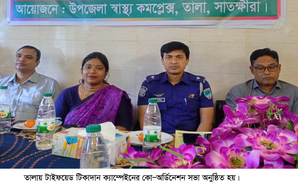 তালা (সাতক্ষীরা) প্রতিনিধি : তালায় টাইফয়েড টিকাদান ক্যাম্পেইনের উপজেলা কো-অর্ডিনেশন সভা অনুষ্ঠিত হয়েছে। আজ ২৯ অক্টোবর ২০২৫ রোজ বুধবার সকালে উপজেলা স্বাস্থ্য কমপ্লেক্স হলরুমে অনুষ্ঠিত সভায় সভাপতিত্ব করেন উপজেলা স্বাস্থ্য ও পরিবার পরিকল্পনা কর্মকর্তা ডা. সুব্রত কুমার। প্রধান অতিথি হিসাবে উপস্থিত ছিলেন উপজেলা নির্বাহী অফিসার দীপা রানী সরকার। হাসপাতালের মেডিকেল টেকনোলজি ইপিআই শেখ সাহিদুর রহমানের সঞ্চালনায় অনুষ্ঠানে বিশেষ অতিথির বক্তব্য রাখেন, তালা থানার ভারপ্রাপ্ত কর্মকর্তা (ওসি) মো. মাইনউদ্দিন, সাতক্ষীরা জেলা জামায়াতের নায়েবে আমীর ডা. মাহমুদুল হক, উপজেলা পরিবার পরিকল্পনা কর্মকর্তা মো. কামাল হোসেন, উপজেলা প্রাথমিক শিক্ষা অফিসার গাজী সাইফুল ইসলাম, তালা প্রেসক্লাবের সভাপতি এমএ হাকিম, শহীদ কামেল মডেল হাইস্কুলের প্রধান শিক্ষক গাজী জাহিদুর রহমান, তালা বাজার মডেল সরকারী প্রাথমিক বিদ্যালয়ের ভারপ্রাপ্ত প্রধান শিক্ষক শেখ মো. জাহাঙ্গীর, আ¤্রকানন মাদ্রাসা সুপার মাওলানা শাহাজান আলী, ভারপ্রাপ্ত স্যানিটারী ইন্সপেক্টর মো. খায়রুল ইসলাম, উপজেলা জামে মসজিদের পেশ ইমাম মাওলানা মো. তাওহীদুর রহমান ও সাংবাদিক প্রভাষক শেখ মোতাহারুল হক শাহিন প্রমুখ।