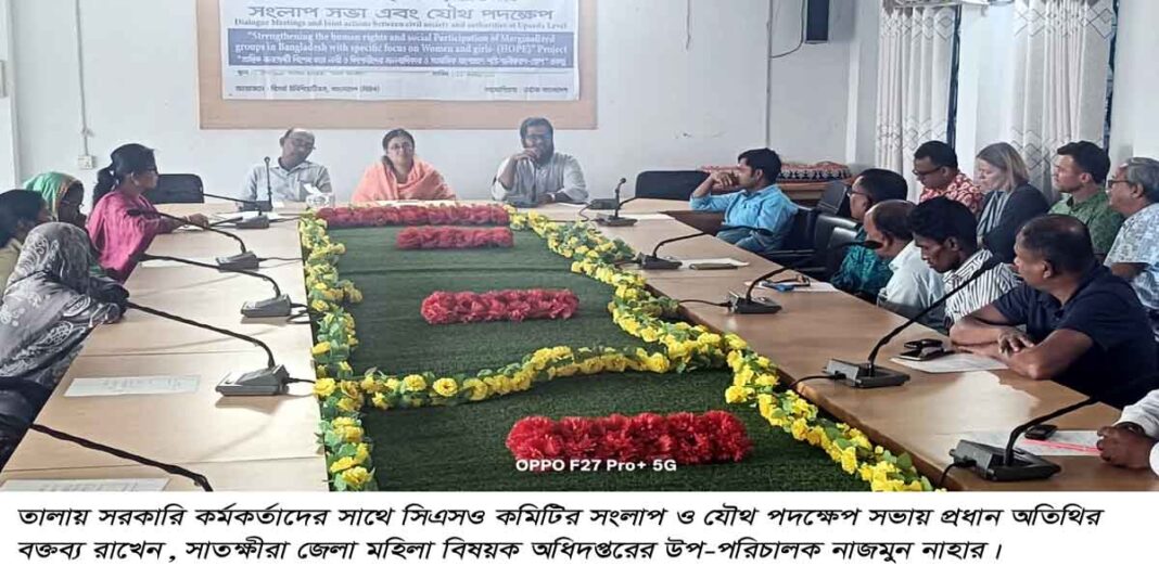 তালা (সাতক্ষীরা) প্রতিনিধি : এলাকার উন্নয়ন, সমস্যা, সমাধান সহ বিভিন্ন জনগুরুত্বপূর্ন বিষয়কে সামনে রেখে তালা উপজেলা প্রশাসনের কর্মকর্তাদের সাথে উপজেলা সিভিল সোসাইটি অর্গানাইজেশন (সিএসও) কমিটির সদস্যদের সংলাপ এবং যৌথ পদক্ষেপ গ্রহন শীর্ষক সভা অনুষ্ঠিত হয়েছে। রিইব’র আয়োজনে, নেটস বাংলাদেশ’র সহযোগীতায় এবং হোপ প্রকল্পের অধিনে আজ ১৮ সেপ্টেম্বর ২০২৫ রোজ বৃহস্পতিবার তালা উপজেলা পরিষদ হলরুমে সভা অনুষ্ঠিত হয়।