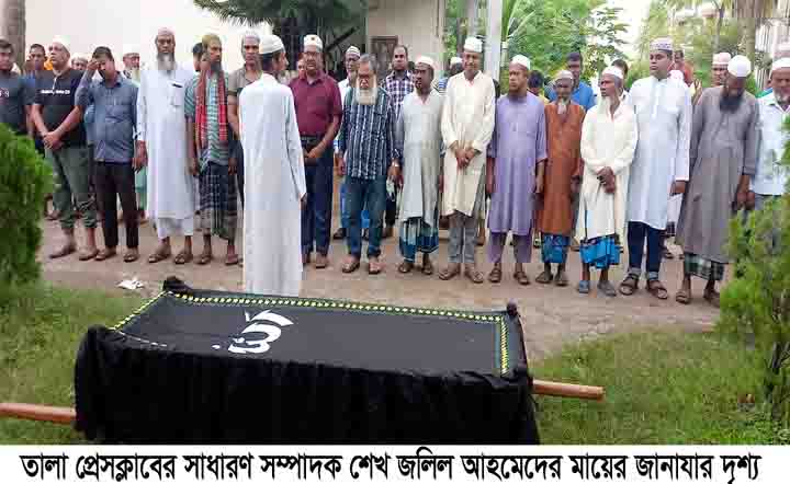 এসময় উপস্থিত ছিলেন, তালা প্রেসক্লাবের সভাপতি সাংবাদিক এসএম নজরুল ইসলাম, সি.সহ-সভাপতি সাংবাদিক এসএম জাহাঙ্গীর হোসেন, বিশিষ্ট ব্যবসায়ী মো: আশরাফুল ইসলাম, তালা হাসপাতালের সাবেক ডা: জাহিরুল হাসান প্রমুখ উপস্থিত ছিলেন। পরে মরহুমার লাশ বাগেরহাট পীরের দরগাহ সংলগ্ন কবর স্থানে দাফন সম্পন্ন করা হয়েছে। এদিকে সাংবাদিক শেখ জলিল আহমেদের মায়ের মৃত্যুতে শোকহত পরিবারের প্রতি সমবেদনা ও মরহুমার রুহের মাগফিরাত কামনা করে বিবৃতি প্রদান করেছেন তালা প্রেসক্লাবের নেতৃবৃন্দ। বিবৃতিদাতারা হলেন, সভাপতি এস,এস নজরুল ইসলাম, সি:সহ-সভাপতি এস,এম জাহাঙ্গীর হাসান, যুগ্ন-সাধারণ সম্পাদক এম,এ মান্নান, কোষাধ্যক্ষ সৈয়দ জুনায়েদ আকবর, সাংগঠনিক সম্পাদক বাবলুর রহমান, দপ্তর সম্পাদক শেখ ইমরান হোসেন, যুগ্ন-দপ্তর সম্পাদক হাসান আলী বাচ্চু, প্রচার সম্পাদক খান নাজমুল হুসাইন, সি:কার্যকারী সদস্য এস,এম লিয়াকত হোসেন, শেখ আব্দুস সালাম, এস,এম আকরামুল ইসলাম, বিএম বাবলুর রহমান, কার্যকারী সদস্য মো:বাহারুল ইসলাম, এ্যাড: কবির আহমেদ, এস,এম জহর হাসান সাগর, কার্যকারী সদস্য আব্দুল মজিদ, সোহাগ মোড়ল, কাজী ইমদাদুল বারী জীবন, মো: লিটন হুসাইন, মো: আফজাল হোসেন, বিএম বোরহান উদ্দীন, মো: বাহারুল মোড়ল, মো: রুহুল আমিন মোল্লা, মো: হাফিজুর রহমান, শেখ ফয়সাল হোসেন, কাজী এনামুল হক বিপ্লব, আল-মাহবুব হুসাইন, অন্তু দাশ, আব্দুল্লাহ আল মামুন, সোনালী রহমান বাবলু, মেহেদী হাসান সাক্ষর, সাইদুর রহমান আকাশ, তপু শেখ, শরিফুল ইসলাম, ফারুক খাঁন, সাধারণ সদস্য মো: জিয়াউর রহমান, মো: সাগর মোড়ল, ইকরামুল ইসলাম প্রমুখ।