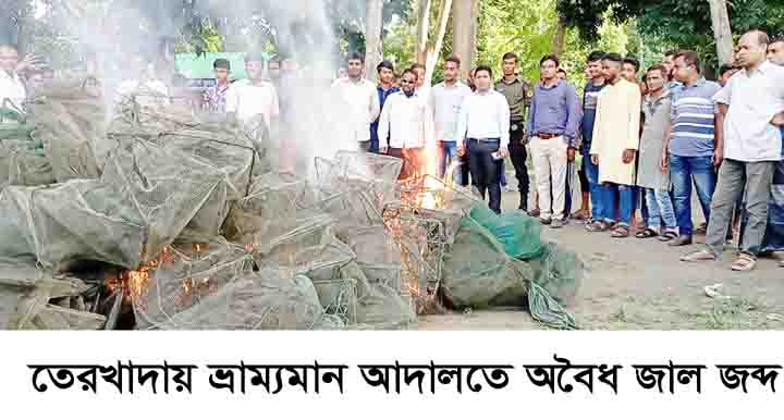 তেরখাদায় ভ্রাম্যমান আদালতে অবৈধ জাল জব্দ