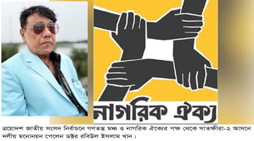সাতক্ষীরা প্রতিনিধি : ত্রয়োদশ জাতীয় সংসদ নির্বাচনে ১২০ জন প্রার্থীর তালিকা প্রকাশ করেছে ৬ দলীয় জোটের মোর্চা গণতন্ত্র মঞ্চ। সেই তালিকায় সাতক্ষীরা-২ (সদর ও দেবহাটা) আসনে মনোনয়ন পেয়েছেন গণতন্ত্র মঞ্চের অন্যতম নেতা ও নাগরিক ঐক্য সাতক্ষীরা জেলা শাখার সভাপতি ডক্টর রবিউল ইসলাম খান। ত্রয়োদশ জাতীয় সংসদ নির্বাচনে গণতন্ত্র মঞ্চের প্রার্থী তালিকায় নাগরিক ঐক্যের সভাপতি মাহমুদুর রহমান মান্না বগুড়া-২ আসন এবং ডক্টর রবিউল ইসলাম খান সাতক্ষীরা-২ আসন সহ নাগরিক ঐক্যের ২০ জনের নাম সহ গণতন্ত্র মঞ্চ ভুক্ত আরো ৫টি দলের ১০০ জন প্রার্থীর নাম ঘোষণা করা হয়েছে। ০৯ অক্টোবর ২০২৫ রোজ বৃহস্পতিবার ঢাকা রিপোর্টার্স ইউনিটিতে সংবাদ সম্মেলন করে প্রার্থীদের নাম ঘোষণা করেন ৬ দলীয় জোটের মোর্চা গণতন্ত্র মঞ্চের বর্তমান সমন্বয়ক বাংলাদেশ রাষ্ট্র সংস্কার আন্দোলনের প্রধান সমন্বয়কারী হাসনাত কাইয়ুম। গণতন্ত্র মঞ্চের ৬টি দলের শীর্ষ নেতাদের মধ্যে এ সময় উপস্থিত ছিলেন নাগরিক ঐক্যের সভাপতি মাহমুদুর রহমান মান্নাসহ গণতন্ত্র মঞ্চের ৬টি দলের শীর্ষ নেতারা। সাতক্ষীরা-২ আসনে মনোনয়ন পাওয়ায় নাগরিক ঐক্যের সাতক্ষীরা জেলা শাখার সভাপতি ডক্টর রবিউল ইসলাম খান তার প্রতিক্রিয়ায় বলেন, দেশের গণতন্ত্র পুনরুদ্ধার, স্বৈরাচারী শাসন ব্যবস্থা চিরদিনের জন্য বিলোপ সাধন, জনগণের ভোটাধিকার নিশ্চিতের যে লড়াইয়ে দীর্ঘ ১৫ বছর ছিলাম, সে লড়াই অব্যাহত রাখবো। তিনি তার প্রতিক্রিয়ায় সাতক্ষীরা-২ আসনে গণতন্ত্র মঞ্চ ও নাগরিক ঐক্যের পক্ষ থেকে মনোনয়ন দেয়ায় গণতন্ত্র মঞ্চের নেতৃবৃন্দ সহ নাগরিক ঐক্যের সভাপতি মাহমুদুর রহমান মান্নার প্রতি কৃতজ্ঞতা প্রকাশ করেন এবং ধন্যবাদ জানান। উল্লেখ্য যে, ২০১৮ সালের দ্বাদশ জাতীয় সংসদ নির্বাচনে জাতীয় ঐক্য ফ্রন্ট এর পক্ষ থেকে বিএনপি মহাসচিব মির্জা ফখরুল ইসলাম আলমগীর স্বাক্ষরিত সাতক্ষীরা-২ আসনের জন্য ডক্টর রবিউল ইসলাম খানকে মনোনয়ন প্রদান করা হয়েছিল। গণতন্ত্র মঞ্চের অন্যতম নেতা ও নাগরিক ঐক্য সাতক্ষীরা জেলা শাখার সভাপতি ডক্টর রবিউল ইসলাম খান এশিয়ান স্টুডেন্টস অ্যাসোসিয়েশনের সাবেক প্রেসিডেন্ট, সাতক্ষীরা সরকারি কলেজের সাবেক ভিপি, সাতক্ষীরা জেলা আইনজীবী সমিতির সাবেক সভাপতি, পোস্ট ডক্টরাল রিসার্চ ফেলো ইন দ্য ফিল্ড অব ল এবং বর্তমানে সাতক্ষীরা ল কলেজের প্রিন্সিপাল। ডক্টর রবিউল ইসলাম খানের পরিবার ৯পুরুষ যাবৎ অর্থাৎ ৯০০ শত বছর পূর্ব থেকেই অদ্যাবধি সাতক্ষীরা শহরের পলাশপোলের নুর আহমদ খান রোডের খান বাড়িতে বসবাস করছেন। তার পিতা নুর আহমদ খান ৩১ বছর যাবৎ সাতক্ষীরা পৌরসভার চেয়ারম্যান ও মেয়র ছিলেন। ডক্টর রবিউল ইসলাম খানের নিকট তার সংসদীয় এলাকার ভো