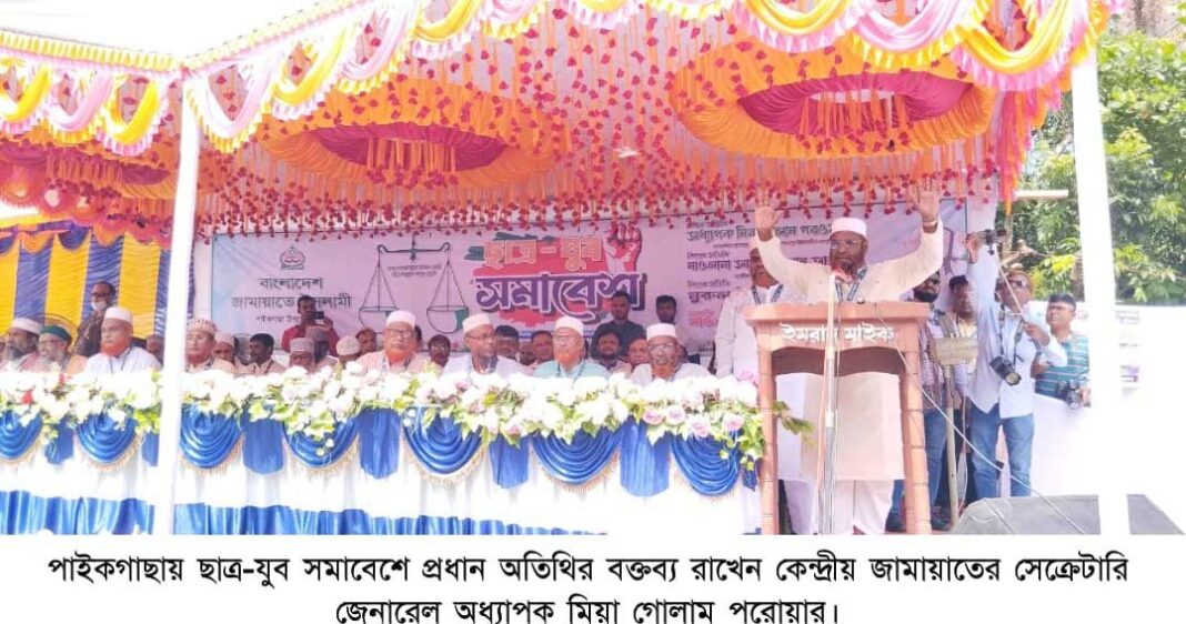 আজ ১১ অক্টোবর ২০২৫ রোজ শনিবার সকালে খুলনার পাইকগাছা সরকারি কলেজ মাঠে পাইকগাছা উপজেলা জামায়াতে ইসলামীর উদ্যোগে ঐতিহাসিক ছাত্র-যুব সমাবেশে প্রধান অতিথির বক্তৃতায় অধ্যাপক গোলাম পরওয়ার এ সব কথা বলেন। জামায়াতে ইসলামীর উপজেলা আমীর মাওলানা সাইদুর রহমানের সভাপতিত্বে সমাবেশে বিশেষ অতিথির বক্তৃতায় বাংলাদেশ জামায়াতে ইসলামীর কেন্দ্রীয় কর্মপরিষদ সদস্য, খুলনা অঞ্চল সহকারী পরিচালক ও খুলনা-৬ (পাইকগাছা কয়রা) আসনের জামায়াত মনোনীত সংসদ সদস্য প্রার্থী মাওলানা আবুল কালাম আজাদ বলেন , আগামী নির্বাচন ফেব্রুয়ারিতেই হতে হবে। তিনি বলেন, অনেকে পিআর পদ্ধতির সমালোচনা করছেন। কিন্তু যারা পিআর বোঝেন না তাদের রাজনীতি করার কিংবা ক্ষমতায় যাওয়ার দরকার নেই। প্রবাসীদেরকে ভোটার তালিকায় অন্তর্ভুক্ত হওয়ার আহবান জানিয়ে তিনি এলাকার উন্নয়নে তাদের অবদান রাখার আহবান জানান। এ সময় তিনি কয়রা-পাইকগাছার উন্নয়নে ২০ দফার নির্বাচনী ইশতেহার ঘোষণা করে বলেন, জামায়াতের নেতৃত্বে ইসলামী জোট রাষ্ট্র পরিচালনার দায়িত্ব পেলে দু’টি উপজেলা নিয়ে সুন্দরবন জেলা গঠনসহ অন্যান্য সব সমস্যার পর্যায়ক্রমে সমাধান করা হবে ইনশাআল্লাহ।