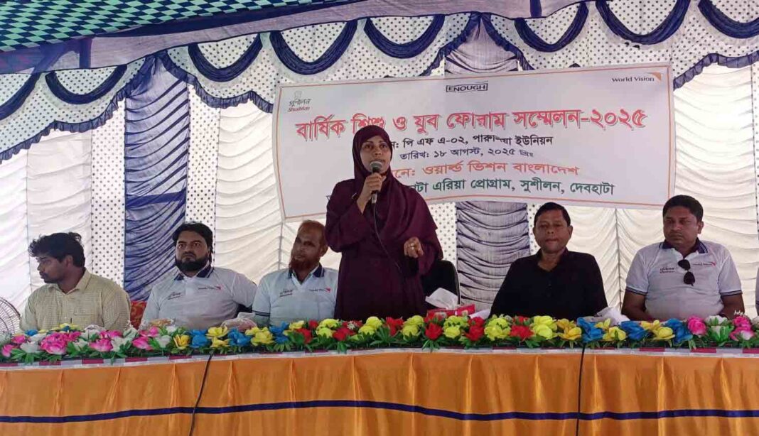 ইয়াছিন আলী, দেবহাটা (সাতক্ষীরা) প্রতিনিধি : দেবহাটায় সুশীলনের দেবহাটা এরিয়া প্রোগ্রামের আয়োজনে ও ওয়ার্ল্ড ভিশন বাংলাদেশের অর্থায়নে বার্ষিক শিশু ও যুব ফোরাম সম্মেলন-২৫ অনুষ্ঠিত হয়েছে। আজ ১৮ আগস্ট ২০২৫ রোজ সোমবার দুপুর সাড়ে ১২টায় পারুলিয়া ইছামতী টেকনিক্যাল স্কুল এন্ড কলেজের সামনে অনুষ্ঠিত উক্ত অনুষ্ঠানে সভাপতিত্ব করেন পারুলিয়া ইউপি চেয়ারম্যান গোলাম ফারুক বাবু। প্রধান অতিথি হিসেবে দেবহাটা উপজেলা মহিলা বিষয়ক কর্মকর্তা নাসরিন জাহান। বিশেষ অতিথি ছিলেন যথাক্রমে দেবহাটা রিপোর্টার্স ক্লাবের সভাপতি আর.কে.বাপ্পা, ইছামতী টেকনিক্যাল কলেজের অধ্যক্ষ আহছানুস সালেহীন, দেবহাটা উপজেলা মাধ্যমিক শিক্ষা অফিসের একাডেমিক সুপারভাইজার মিজানুর রহমান ও দেবহাটা উপজেলা যুব উন্নয়ন অধিদপ্তরের সহকারী কর্মকর্তা তরিকুল ইসলাম। শুরুতে স্বাগত বক্তব্য রাখেন সুশীলনের কমিউনিটি ডেভেলপমেন্ট অফিসার মিজানুর রহমান। সুশীলনের ন্যাশনাল চাইল্ড প্রোগ্রামের ভাইস প্রেসিডেন্ট অনামিকা পালের সার্বিক সঞ্চালনায় এসময় অনুষ্ঠানে অন্যান্যের মধ্যে উপস্থিত ছিলেন দেবহাটা রিপোর্টার্স ক্লাবের সাংগঠনিক সম্পাদক কে এম রেজাউল করিম, দেবহাটা প্রেসক্লাবের সাংগঠনিক সম্পাদক কবির হোসেন, সুশীলনের বিভিন্ন দায়িত্বপ্রাপ্ত কর্মকর্তা ও উপজেলার ৫টি ইউনিয়নের শিশু ও যুব ফোরামের কমিটির কর্মকর্তাবৃন্দ। শুরুতে পট গান ও বিভিন্ন পোস্টারিংয়ের মাধ্যমে আগত অতিথিদেরকে সুশীলনের পক্ষ থেকে এই শিশু ও যুব ফোরামের কার্য্যক্রম সম্পর্কে অবহিত করা হয়। এই কমিটি শিশু শ্রম বন্ধ, বাল্য বিবাহ প্রতিরোধ, সামাজিক অবক্ষয় রোধ, শিক্ষার্থীদেরকে মনিটরিংয়ের মাধ্যমে সচেতন ও স্বাবলম্বী হতে সহায়তা করাসহ বিভিন্ন কাজ করছে বলে জানানো হয়।