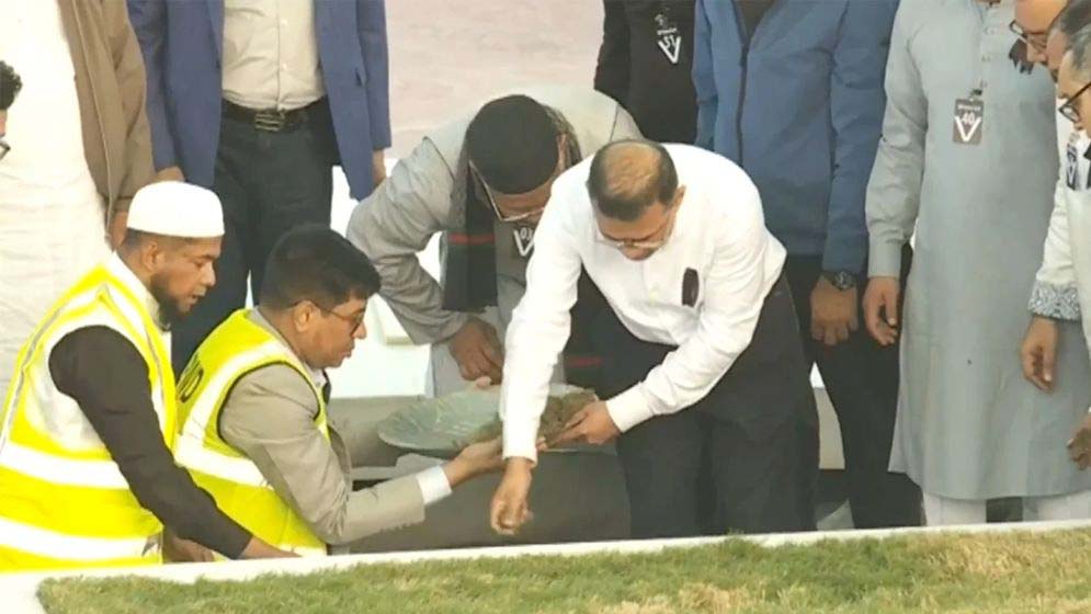 রাষ্ট্রপতি মো. সাহাবুদ্দিন, তার সামরিক সচিব এবং প্রধান উপদেষ্টা অধ্যাপক মুহাম্মদ ইউনূসের পক্ষে, তার সামরিক সচিব কবর ভরাট করার পর কবরে পুষ্পস্তবক অর্পণ করেন।