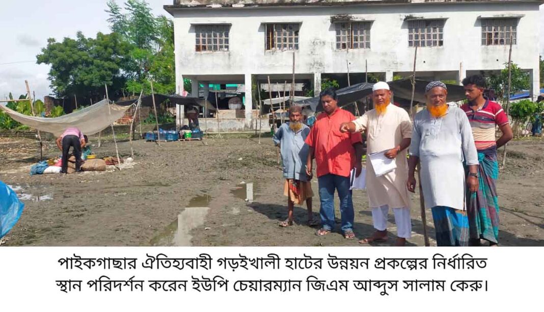 তৃপ্তি রঞ্জন সেন, পাইকগাছা (খুলনা) প্রতিনিধি : নানা সমস্যায় জর্জরিত খুলনার পাইকগাছার ঐতিহ্যবাহী গড়ইখালী বাজারের উন্নয়নে রাস্তা, ড্রেনেজ এবং চান্নি সংস্কারের উদ্যোগ নিয়েছে গড়ইখালী ইউনিয়ন পরিষদ। এ ব্যাপারে প্রস্তাবিত প্রকল্প বাস্তবায়নে উপজেলা নির্বাহী অফিসার মাহেরা নাজনীন বরাবর আবেদন করেছেন গড়ইখালী ইউনিয়ন পরিষদের চেয়ারম্যান জিএম আব্দুস সালাম কেরু। আজ ২২ সেপ্টেম্বর ২০২৫ রোজ সোমবার দুপুরে প্রস্তাবিত প্রকল্পের নির্ধারিত স্থান পরিদর্শন করেছেন উপজেলা প্রকৌশল দপ্তরের সংশ্লিষ্ট প্রতিনিধি আবু ইসহাক। উল্লেখ্য উপজেলার ঐতিহ্যবাহী হাট বাজার গুলোর মধ্যে গড়ইখালী হাট অন্যতম। বৃহৎ এলাকা নিয়ে সুন্দরবন সংলগ্ন এলাকার অন্যতম বৃহৎ হাট গড়ইখালী। প্রতি সপ্তাহের সোমবার হাটের জন্য নির্ধারণ করা নির্দিষ্ট দিন। এদিন গড়ইখালী সহ আশে পাশের ইউনিয়ন এবং উপজেলার হাজার হাজার এ হাটে আসেন প্রয়োজনীয় জিনিস কেনা-বেচা করতে। কিন্তু অবকাঠামো গত নানা সমস্যার কারণে হাটের দীর্ঘদিনের ঐতিহ্য হারাতে বসেছে। এ কারণে হাটের উন্নয়নে বেশ কিছু উদ্যোগ নিয়েছেন গড়ইখালী ইউনিয়ন পরিষদ। পরিষদ থেকে বাজারের পানি নিষ্কাশনের জন্য সাইক্লোন শেল্টারের সামনের ড্রেনেজ ব্যবস্থার উন্নয়ন, মাছের চান্নি সংস্কার এবং মাইন সানার দোকানের সামনে থেকে কষ্ঠুর সমিল পর্যন্ত রাস্তা সংস্কারের উদ্যোগ নেওয়া হয়েছে। প্রস্তাবিত এসব প্রকল্প বাস্তবায়ন হলে হাট ব্যবস্থাপনার উন্নয়ন সহ সরকারের রাজস্ব বৃদ্ধি পাবে বলে প্রকল্প স্থান পরিদর্শন করে জানিয়েছেন ইউপি চেয়ারম্যান জিএম আব্দুস সালাম কেরু। এসময় প্যানেল চেয়ারম্যান মুক্তিযোদ্ধা সরত চন্দ্র মন্ডল সহ বাজারের ব্যবসায়ীরা উপস্থিত ছিলেন।