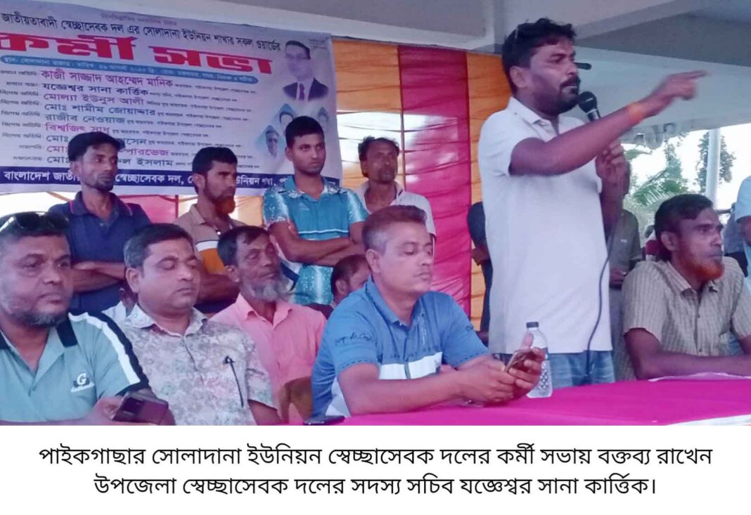 তৃপ্তি রঞ্জন সেন, পাইকগাছা (খুলনা) প্রতিনিধি : পাইকগাছার গদাইপুর ও সোলাদানা ইউনিয়ন স্বেচ্ছাসেবক দলের সকল ওয়ার্ডের কর্মী সভা অনুষ্ঠিত হয়েছে। আজ ২৭ আগস্ট ২০২৫ রোজ বুধবার সকালে উপজেলার গদাইপুর বাজার চত্বরে ইউনিয়ন স্বেচ্ছাসেবক দল গুরুত্বপূর্ণ সাংগঠনিক এ কর্মী সভার আয়োজন করে। ইউনিয়ন স্বেচ্ছাসেবক দলের আহবায়ক এসএম শামীম আহমেদ এর সভাপতিত্বে অনুষ্ঠিত সভায় প্রধান অতিথি ছিলেন উপজেলা স্বেচ্ছাসেবক দলের সদস্য সচিব যজ্ঞেশ্বর সানা কার্ত্তিক। প্রধান বক্তা ছিলেন উপজেলা স্বেচ্ছাসেবক দলের সিনিয়র যুগ্ম আহবায়ক মোল্যা ইউনুস আলী। ইউনিয়ন স্বেচ্ছাসেবক দলের সদস্য সচিব আল আমিন মোড়ল এর সঞ্চালনায় অনুষ্ঠিত সভায় বিশেষ অতিথি ছিলেন সোলাদানা ইউনিয়ন বিএনপির সাবেক সভাপতি আমিনুর রহমান সরদার, সাবেক সাধারণ সম্পাদক আব্দুল হাকিম সানা, উপজেলা স্বেচ্ছাসেবক দলের যুগ্ম আহবায়ক শামীম জোয়ার্দার, রাজীব নেওয়াজ, বিশ্বজিৎ সাধু, সাদ্দাম হোসেন। সভায় ইউনিয়নের সকল ওয়ার্ডের সভাপতি সম্পাদক সহ উপজেলা, ইউনিয়ন এবং ওয়ার্ড পর্যায়ের বিভিন্ন নেতাকর্মীরা উপস্থিত ছিলেন। অপরদিকে মঙ্গলবার বিকালে উপজেলার সোলাদানায় সোলাদানা ইউনিয়ন স্বেচ্ছাসেবক দলের পৃথক কর্মী সভা অনুষ্ঠিত হয়। সোলাদানা ইউনিয়ন স্বেচ্ছাসেবক দলের আহবায়ক আসলাম পারভেজ এর সভাপতিত্বে অনুষ্ঠিত সভায় প্রধান অতিথি ছিলেন উপজেলা স্বেচ্ছাসেবক দলের সদস্য সচিব যজ্ঞেশ্বর সানা কার্ত্তিক। প্রধান বক্তা ছিলেন উপজেলা স্বেচ্ছাসেবক দলের সিনিয়র যুগ্ম আহবায়ক মোল্যা ইউনুস আলী। বিশেষ অতিথি ছিলেন সোলাদানা ইউনিয়ন বিএনপির সাবেক সভাপতি আমিনুর রহমান সরদার, সাবেক সাধারণ সম্পাদক আব্দুল হাকিম সানা, উপজেলা স্বেচ্ছাসেবক দলের যুগ্ম আহবায়ক শামীম জোয়ার্দার, রাজীব নেওয়াজ, বিশ্বজিৎ সাধু, সাদ্দাম হোসেন। ইউনিয়ন স্বেচ্ছাসেবক দলের সদস্য সচিব আজহারুল ইসলামের সঞ্চালনায় অনুষ্ঠিত সভায় বক্তব্য রাখেন স্বেচ্ছাসেবক দল নেতা ইসরাফিল মোড়ল, হারুন অর রশীদ, রোকন সানা, টিপু গাজী, ওমর আলী, মনিরুল ইসলাম খাঁ, বাবুল সরদার, কামাল হোসেন, রফিকুল ইসলাম, লিটন খাঁ, মুকুল খাঁ, রাজা হোসেন, হামিদুল ইসলাম, সাব্বির হোসেন, আজিবর রহমান মোল্লা, আলমগীর হোসেন, রমজান গাজী, আব্দুস সালাম, মিঠুন ফকির, মনিরুল ইসলাম মোড়ল, নুরুল হক ও শাহাদাৎ হোসেন। সভায় ইউনিয়ন সকল ওয়ার্ডের সভাপতি সম্পাদক সহ সকল পর্যায়ের নেতাকর্মীরা উপস্থিত ছিলেন।