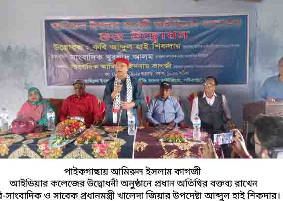 তৃপ্তি রঞ্জন সেন, পাইকগাছা (খুলনা) প্রতিনিধি : পাইকগাছার আমিরুল ইসলাম কাগজী আইডিয়াল কলেজের শুভ উদ্বোধনী অনুষ্ঠান আজ ২৯ নভেম্বর ২০২৪ রোজ শুক্রবার সকালে পৌর সদরের শিববাটীস্থ কলেজ মিলনায়তনে অনুষ্ঠিত হয়েছে। কলেজের প্রতিষ্ঠাতা জিয়াউর রহমান ফাউন্ডেশন এর প্রোগ্রাম ডাইরেক্টর সাংবাদিক আমিরুল ইসলাম কাগজী এর সভাপতিত্বে কলেজের উদ্বোধন করেন সাংবাদিক, অধ্যাপক ও সাবেক প্রধানমন্ত্রী বিএনপি চেয়ারপার্সনের উপদেষ্টা কবি আব্দুল হাই শিকদার। বিশেষ অতিথি ছিলেন ঢাকা সাংবাদিক ইউনিয়নের সাধারণ সম্পাদক সাংবাদিক খুরশীদ আলম, সাংবাদিক আমিরুল ইসলামের সহধর্মিণী জ্যোৎস্না আক্তার, কলেজের সভাপতি আব্দুল করিম। প্রভাষক আবু রাসেল কাগজীর সঞ্চালনায় অনুষ্ঠানে বক্তব্য রাখেন সাংবাদিক রফিক লিটন, ইসলামি বিশ্ববিদ্যালয় ছাত্রদলের সভাপতি রাকিবুল ইসলাম সবুজ, সহকারী অধ্যাপক আব্দুর রাজ্জাক, প্রভাষক আবু সাঈদ ও শিক্ষক হাফিজুর রহমান। অনুষ্ঠানের শুরুতেই কবি আব্দুল হাই শিকদার কলেজের ভিত্তিপ্রস্তর স্থাপন করে এর শুভ উদ্বোধন করেন।