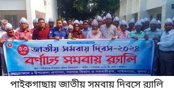 তৃপ্তি রঞ্জন সেন, পাইকগাছা (খুলনা) প্রতিনিধি : ৫৩ তম জাতীয় সমবায় দিবস উপলক্ষ্যে খুলনার পাইকগাছায় র্যালি ও আলোচনা সভা অনুষ্ঠিত হয়েছে। আজ ০২ নভেম্বর ২০২৪ রোজ শনিবার সকালে উপজেলা প্রশাসনের আয়োজনে পরিষদ চত্বর থেকে একটি বর্নাঢ্য র্যালি বের হয়ে সদরের প্রধান প্রধান সড়ক প্রদক্ষিণ করে। পরে পরিষদ চত্বরে জাতীয় সঙ্গীতের সাথে সাথে জাতীয় পতাকা ও সমবায় পতাকা উত্তোলন করা হয়। এরপর উপজেলা পরিষদ মিলনায়তনে উপজেলা সমবায় কর্মকর্তা মোঃ হুমায়ুন কবিরের সভাপতিত্ব অনুষ্টিত সভায় প্রধান অতিথি ছিলেন উপজেলা নির্বাহী কর্মকর্তা মাহেরা নাজনীন। বিশেষ অতিথি ছিলেন উপজেলা সিনিয়র মৎস্য কর্মকর্তা সৈকত মল্লিক, পাইকগাছা থানার ওসি তদন্ত তুষার কান্তি দাস, সমাজ সেবা কর্মকর্তা অনাথ কুমার মন্ডল, পাইকগাছা প্রেসক্লাবের সভাপতি এ্যাড. এফ এম এ রাজ্জাক। পাইকগাছা প্রেসক্লাবের সাধারণ সম্পাদক এম মোসলেম উদ্দীন আহম্মেদের পরিচালনায় বক্তব্য রাখেন ষোলআনা ব্যবসায়ী সমিতির সাবেক সভাপতি এড. মোর্তজা জামান আলমগীর রুলু, ষোলআনা ব্যবসায়ী সমিতির সভাপতি শুকুরুজ্জামান, সম্পাদক ইলিয়াস হোসেন, প্রানকৃষ্ণ দাস, দ্বিজেন্দ্র নাথ মন্ডল, পঞ্চানন সানা, বাবুরাম মন্ডল, বিদ্যুৎ মন্ডল, মিল্টন কুমার মন্ডল, ইব্রাহীম হোসেন প্রমুখ।