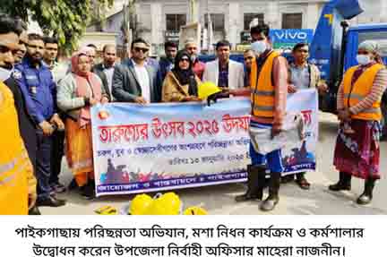 তৃপ্তি রঞ্জন সেন, পাইকগাছা (খুলনা) প্রতিনিধি : তারুণ্যের উৎসব-২০২৫ উদযাপন উপলক্ষ্যে খুলনার পাইকগাছায় তরুণ, যুব ও স্বেচ্ছাসেবীদের অংশগ্রহণে পরিচ্ছন্নতা অভিযান ও মশা নিধক কার্যক্রম শেষে “তারুণ্যের ভাবনায় আগামীর বাংলাদেশ” শীর্ষক কর্মশালা অনুষ্ঠিত হয়েছে। পাইকগাছা পৌরসভার আয়োজনে ও বাস্তাবায়নে আজ ১৩ জানুয়ারি ২০২৫ রোজ সোমবার সকালে কর্মসূচির শুরুতেই পৌরসভা চত্বরে পৌরসভার কর্মরত পরিচ্ছন্নতা কর্মীদের মাঝে পরিচ্ছন্ন সরঞ্জামাদি প্রদান করেন পৌর প্রশাসক ও উপজেলা নির্বাহী অফিসার মাহেরা নাজনীন। এরপর তরুণ, যুব ও স্বেচ্ছাসেবীদের অংশগ্রহণে পরিচ্ছন্নতা অভিযান ও মশা নিধক কার্যক্রম শুরু হয়। পরে পৌরসভার সম্মেলন কক্ষে “তারুণ্যের ভাবনায় আগামীর বাংলাদেশ” শীর্ষক কর্মশালায় সভাপতিত্ব করেন ও স্বাগত বক্তব্য রাখেন পৌর প্রশাসক ও উপজেলা নির্বাহী অফিসার মাহেরা নাজনীন। ৮নং ওয়ার্ড সদস্য ও উপজেলা প্রকৌশলী মোঃ শোয়েব শাফিনের এর উপস্থাপনায় বক্তৃতা করেন, পৌর নির্বাহী কর্মকর্তা মোঃ লালু সরদার, উপজেলা শিক্ষা কর্মকর্তা ও ৬,৯ নং ওয়ার্ড সদস্য বিদ্যুৎ রঞ্জন সাহা, সমাজসেবা কর্মকর্তা ও ৩, ৪ ওয়ার্ড সদস্য অনাথ কুমার বিশ্বাস, সহকারী অধ্যাপক মোঃ শহিদুল ইসলাম, মেডিকেল অফিসার ডাঃ ইব্রাহীম গাজী, প্রভাষক খান সেলিম, এসআই শামীম। এ সময় পৌরসভার কমিউনিটি মোবিলাইজার মোঃ কাওছার আলী, প্রধান সহকারী শেখ জিয়াউর রহমান, জিএম রফিকুল ইসলাম, মোঃ সাইদুর রহমান, উত্তম কুমার ঘোষ, হেমেন্দ্র নাথ গাইন, মৃণাল কান্তি সানা, বিদ্যুৎ রায়, বিকাশ ঘোষ, মোঃ শাহিনুর হোসেন, তন্ময় মন্ডল, সমন্বয়ক মোঃ আব্দুল কাদের নয়ন, আসিব হাসান পরশ, মোঃ আল আমিন, হুসাইন আহম্মেদ ও মোঃ মেহেদী হাসান, সাংবাদিক, বৈষম্য বিরোধী ছাত্র আন্দোলন, পাইকগাছা সরকারি উচ্চ বিদ্যালয়, পাইকগাছা সরকারি বালিকা উচ্চ বিদ্যালয় ও ফসিয়ার রহমান রহমান মহিলা কলেজের শিক্ষার্থীরা উপস্থিত ছিলেন।