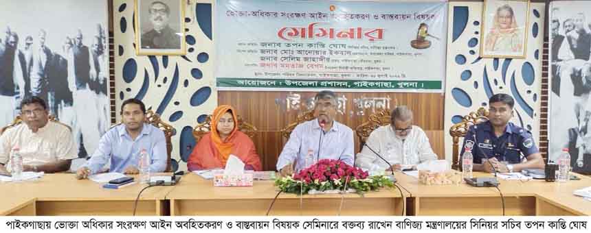 তৃপ্তি রঞ্জন সেন, পাইকগাছা (খুলনা) প্রতিনিধি : খুলনার পাইকগাছা উপজেলার সরকারি কর্মকর্তাদের অংশগ্রহণে বাণিজ্য মন্ত্রণালয়ের কার্যক্রম সর্ম্পকিত মতবিনিময় সভা উপজেলা পরিষদ মিলনায়তনে অনুষ্ঠিত হয়েছে। আজ ৩১ জুলাই ২০২২ রোজ রবিবার সকালে উপজেলা নির্বাহী অফিসার মমতাজ বেগম এর সভাপতিত্বে মতবিনিময় সভায় প্রধান অতিথি ছিলেন বাণিজ্য মন্ত্রণালয়ের সিনিয়র সচিব তপন কান্তি ঘোষ। বিশেষ অতিথি ছিলেন উপজেলা চেয়ারম্যান মোঃ আনোয়ার ইকবাল মন্টু, সহকারী কমিশনার (ভুমি) এম আব্দুল্লাহ ইবনে মাসুদ, থানার ওসি মোঃ জিয়াউর রহমান জিয়া, মেডিকেল অফিসার ডাঃ সুজন কুমার সরকার। সভায় অন্যান্যের মধ্যে বক্তব্য রাখেন পৌর প্যানেল মেয়র শেখ মাহাবুবর রহমান রঞ্জু, ইউপি চেয়ারম্যান আব্দুল মান্নান গাজী, উপজেলা প্রকৌশলী হাফিজুর রহমান, প্রাণী সম্পদ কর্মকর্তা ডাঃ বিষ্ণুপদ বিশ্বাস, উপজেলা শিক্ষা কর্মকর্তা বিদ্যুৎ রঞ্জন সাহা, মাধ্যমিক শিক্ষা কর্মকর্তা শাহাজান আলী, বন কর্মকর্তা প্রেমানন্দ রায়, পল্লী বিদ্যুৎ এর ডিজিএম এম রেজায়েত আলী, মহিলা বিষয়ক কর্মকর্তা মোঃ মনিরুজ্জামান, সমাজসেবা কর্মকর্তা সরদার আলী আহসান, সমবায় কর্মকর্তা বেনজীর আহমেদ, পিআইও ইমরুল কায়েস, প্রধান শিক্ষক অজিত কুমার সরকার, প্রেসক্লাবের সাবেক সভাপতি মোস্তফা কামাল জাহাঙ্গীর, পাইকগাছা প্রেসক্লাবের সিনিয়র সহ-সভাপতি তৃপ্তি রঞ্জন সেন, কোষাধ্যক্ষ বাবুল আক্তার, বি সরকার, সাবেক সম্পাদক এস এম আলাউদ্দীন সোহাগ, সাংবাদিক এমদাদুল হক, বজলুর রহমান, মোঃ আসাদুল ইসলাম, পুর্ণ চন্দ্র মন্ডল ও মোঃ ফসিয়ার রহমান, ষোলআনা ব্যবসায়ী সমবায় সমিতির সভাপতি মোঃ শুকুরুজ্জামান।