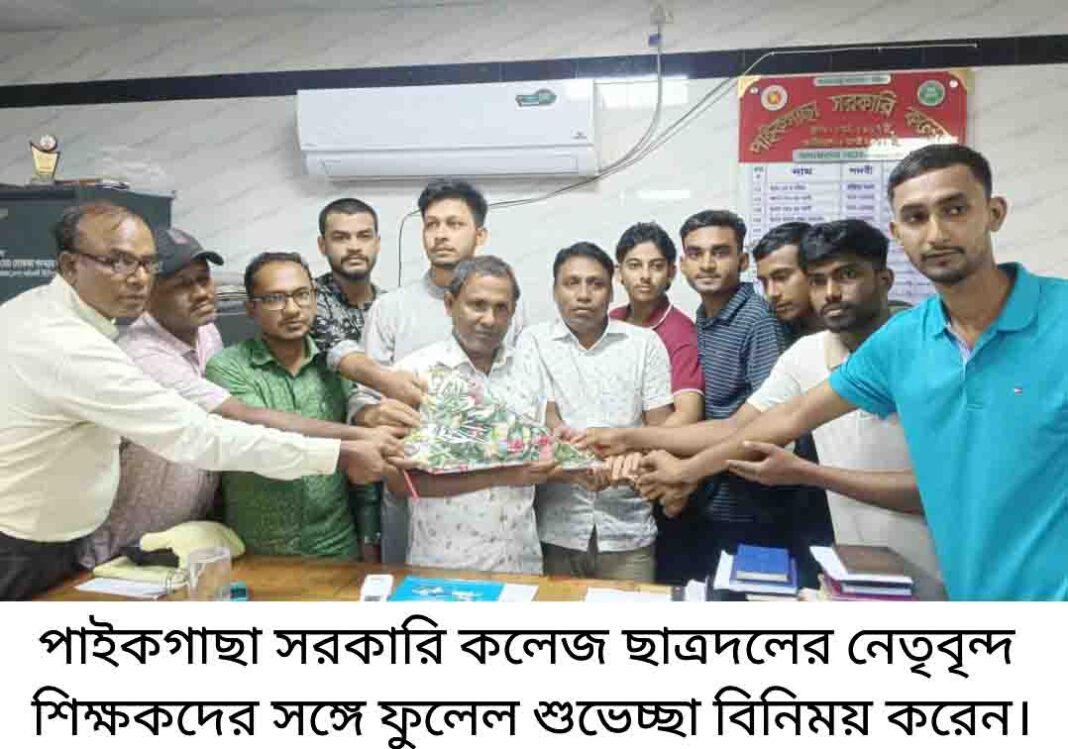 তৃপ্তি রঞ্জন সেন, পাইকগাছা (খুলনা) প্রতিনিধি : পাইকগাছা সরকারি কলেজ ছাত্রদলের উদ্যোগে শুভেচ্ছা মিছিল ও শিক্ষকদের সঙ্গে মতবিনিময় সভা অনুষ্ঠিত হয়েছে। আজ ২১ আগস্ট ২০২৫ রোজ বৃহস্পতিবার সকালে কলেজ চত্বরে শুভেচ্ছা মিছিল ও মতবিনিময় সভায় অন্যান্যের মধ্যে উপস্থিত ছিলেন পাইকগাছা সরকারি কলেজ ছাত্রদলের সভাপতি জি, এম রাশেদুজ্জামান, সাধারণ সম্পাদক আসিফ সরদার, সিনিয়র সহ-সভাপতি এস এম মাহবুবুর রহমান, সিনিয়র যুগ্ম সাধারণ সম্পাদক আরাফাত ইসলাম আফতাব, যুগ্ম সাধারণ সম্পাদক মাহি ও নুরুজ্জামান, সাংগঠনিক সম্পাদক তানভীর রহমান তূর্যসহ ছাত্রদলের বিভিন্ন পর্যায়ের নেতৃবৃন্দ।