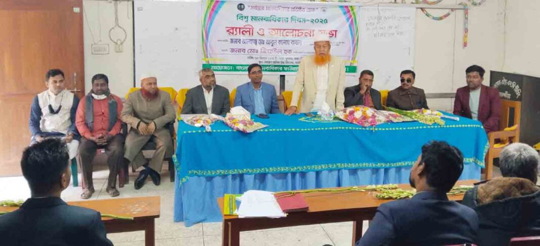 বক্তারা বলেন, ১৯৪৮ সালের ১০ ডিসেম্বর জাতিসংঘ কর্তৃক মানবাধিকারের সর্বজনীন ঘোষণাপত্র গৃহীত হওয়ার পর থেকে প্রতি বছর এ দিবস পালিত হচ্ছে। মানবিক মর্যাদা, ন্যায়বিচার ও অধিকার নিশ্চিতে বাংলাদেশের ১৯৭২ সালের সংবিধান আন্তর্জাতিকভাবে স্বীকৃত মানবাধিকার সুরক্ষার অঙ্গীকার পুনর্ব্যক্ত করেছে।