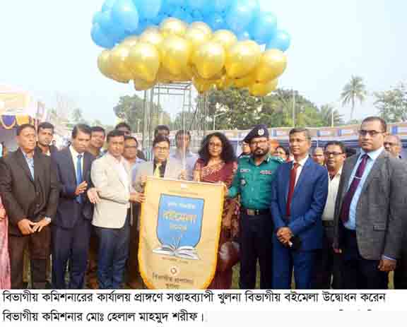 সপ্তাহব্যাপী খুলনা বিভাগীয় বইমেলার উদ্বোধন অনুষ্ঠান আজ ২৬ নভেম্বর ২০২৪ রোজ মঙ্গলবার বিকালে বিভাগীয় কমিশনারের কার্যালয় প্রাঙ্গণে অনুষ্ঠিত হয়। খুলনার বিভাগীয় কমিশনার মোঃ হেলাল মাহমুদ শরীফ অনুষ্ঠানে প্রধান অতিথি ছিলেন। সংস্কৃতি বিষয়ক মন্ত্রণালয়ের নির্দেশনায় ও খুলনা বিভাগীয় কমিশনার কার্যালয়ের সহযোগিতায় জাতীয় গ্রন্থকেন্দ্র এ মেলার আয়োজন করে।