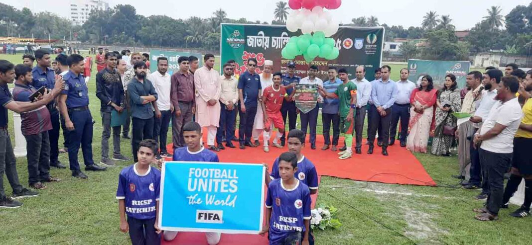 নিজস্ব প্রতিনিধি : নতুন বাংলাদেশ গড়ার লক্ষ্যে তারুণ্যের উৎসব-২০২৫ জাতীয় চ্যাম্পিয়নশীপ-২০২৫ ফুটবল টুর্নামেন্টের আনুষ্ঠানিক উদ্বোধন করা হয়েছে। আজ ২১ সেপ্টেম্বর ২০২৫ রোজ রবিবার বিকালে যুব ও ক্রীড়া মন্ত্রণালয়ের পৃষ্ঠপোষকতায় ও বাংলাদেশ ফুটবল ফেডারেশনের আয়োজনে এবং সাতক্ষীরা জেলা প্রশাসন ও জেলা ক্রীড়া সংস্থার সার্বিক ব্যবস্থাপনায় সাতক্ষীরা জেলা স্টেডিয়ামে অতিরিক্ত জেলা প্রশাসক (সার্বিক) বিষ্ণুপদ পালের সভাপতিত্বে প্রধান অতিথি হিসেবে বেলুন ও ফেস্টুন উড়িয়ে জাতীয় চ্যাম্পিয়নশীপ-২০২৫ ফুটবল টুর্নামেন্টের আনুষ্ঠানিক উদ্বোধন করেন সাতক্ষীরা জেলা প্রশাসক মোস্তাক আহমেদ।