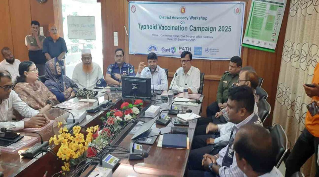 নিজস্ব প্রতিনিধি : টাইফয়েড টিকাদান ক্যাম্পেইন-২০২৫ উপলক্ষে এ্যাডভোকেসি সভা অনুষ্ঠিত হয়েছে। আজ ১০ সেপ্টেম্বর ২০২৫ রোজ বুধবার সকাল সাড়ে ৯টায় সাতক্ষীরা সিভিল সার্জন অফিসের আয়োজনে কনফারেন্স রুমে সিভিল সার্জন ডা: আব্দুস সালাম এর সভাপতিত্বে এ্যাডভোকেসি সভায় প্রধান অতিথি হিসেবে বক্তব্য রাখেন সাতক্ষীরা জেলা প্রশাসক মোস্তাক আহমেদ।