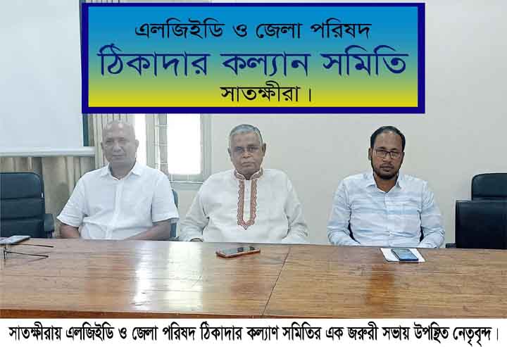 নিজস্ব প্রতিনিধি : সাতক্ষীরায় এলজিইডি ও জেলা পরিষদ ঠিকাদার কল্যাণ সমিতির এক জরুরী সভা অনুষ্ঠিত হয়েছে। ০৭ সেপ্টেম্বর ২০২২ রোজ বুধবার দুপুরে সাতক্ষীরা এলজিইডি’র কনফারেন্স রুমে এলজিইডি ও জেলা পরিষদ ঠিকাদার কল্যাণ সমিতির আয়োজনে সংগঠনের সভাপতি আলহাজ¦ আব্দুস সবুর’র সভাপতিত্বে ঠিকাদারদের বর্তমান প্রেক্ষাপট নিয়ে আলোচনা সভায় বক্তব্য রাখেন এলজিইডি ও জেলা পরিষদ ঠিকাদার কল্যাণ সমিতির সিনিয়র সহ-সভাপতি ও চেম্বার অব কমার্সের উর্দ্ধতন সহ-সভাপতি বিশিষ্ট ঠিকাদার এনছান বাহার বুলবুল, এলজিইডি ও জেলা পরিষদ ঠিকাদার কল্যাণ সমিতির দপ্তর সম্পাদক আসাদুজ্জামান সেলিম, ঠিকাদার ইকবাল জমাদ্দার প্রমুখ।