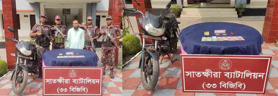 গোয়েন্দা তথ্যের বরাতে তিনি জানান, সাতক্ষীরাস্থ তলুইগাছা বিওপি’র টহলদল সাতক্ষীরা শহর, খুলনা রোড এলাকা দিয়ে স্বর্ণ ভারতে পাচারের উদ্দেশ্যে গমন করবে-এমন সংবাদ প্রাপ্তির পর অত্র ব্যাটালিয়নের তলুইগাছা বিওপি কমান্ডার নায়েব সুবেদার মোঃ রফিকুল ইসলামের নেতৃত্বে একটি চৌকষ আভিযানিকদল উক্ত স্থানে কৌশলে অবস্থান গ্রহণ করে। এ সময় আভিযানিকদল উক্ত স্থানে সাতক্ষীরা শহর হতে ভাদিয়ালী সীমান্তে গমনকালে মোটরসাইকেল থামিয়ে তল্লাশী করে সাতক্ষীরার সাতানি গ্রামের মৃত হাবিবুর রহমানের ছেলে মোঃ তজিবুর রহমান (৪৩)কে ০১টি মোটরসাইকেল, নগদ ৭২হাজার ৫০০ টাকা এবং ০২টি মোবাইলসহ আটক করে। পরবর্তীতে আটককৃত ব্যক্তিকে তল্লাশী করে তার কোমরের বাম পার্শ্বে প্যান্টের সাথে কালো স্কসটেপ দ্বারা পেঁচানো অবস্থায় ০২টি স্বর্ণের বার উদ্ধার করা হয়। উদ্ধারকৃত স্বর্ণের আনুমানিক ওজন ৫৪১ গ্রাম। যার আনুমানিক মূল্য ৬৬ লক্ষ টাকা।